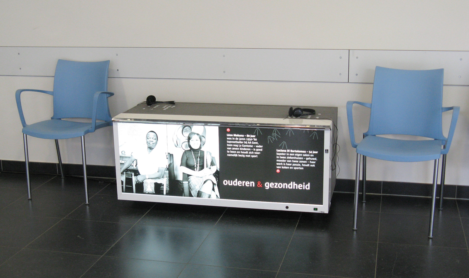 Een project rond cultureel erfgoed en diversiteit in ziekenhuizen. Reizende tentoonstelling in 10 verschillende ziekenhuizen in Vlaanderen en Brussel. Installatie met negatoscopen, omgebouwd tot kijkdozen waarin beklijvende verhalen en beelden van het leven van diverse mensen zijn opgenomen. De verhalen kunnen ook beluisterd worden via in het ziekenhuis verspreide luisterboxen.