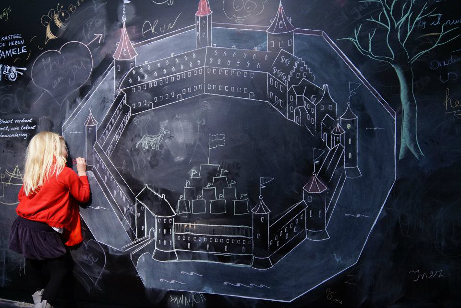 Datzelfde geldt ook voor het samenwerken met grafische ontwerpers zoals Stijn Dams en PJOTR, die zich inschrijven in het totaalconcept en met het team samen zoeken naar een vormentaal die het verhaal ten dienste staat. Materialen, kleuren, schrijfstijl, verhaalstructuur en indeling haken in op elkaar.