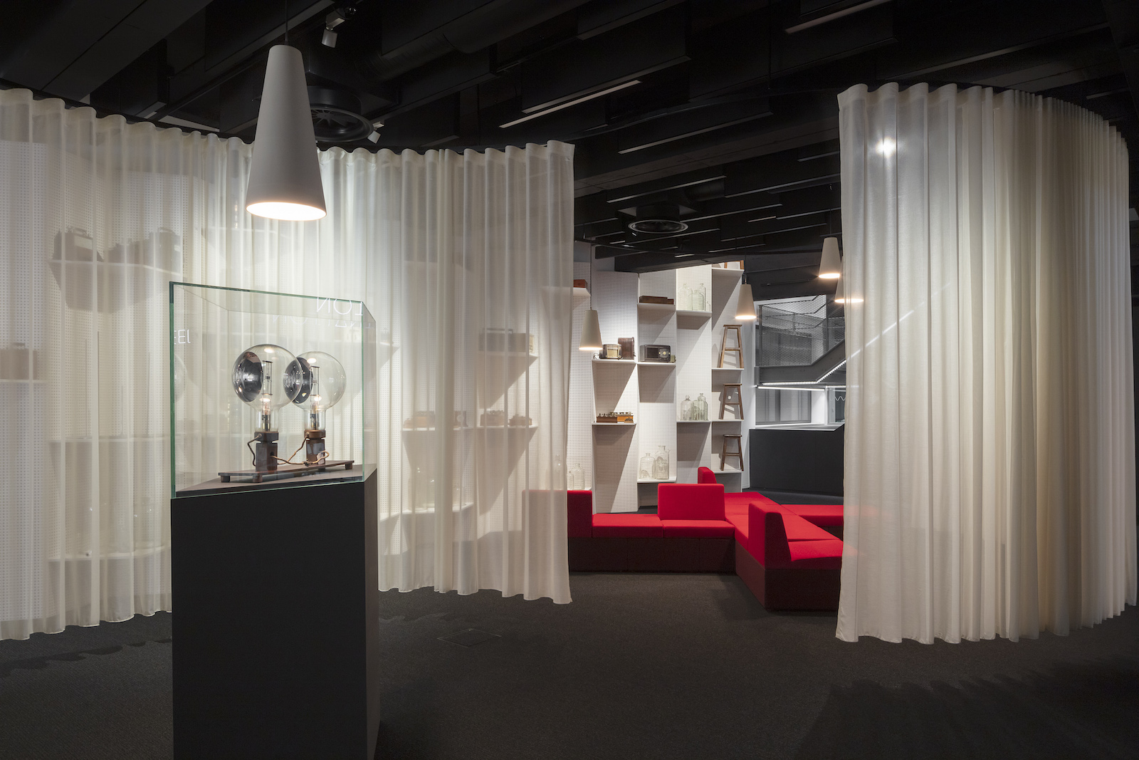 De grote ruimte van de permanente opstelling baadt in een bijzondere sfeer van licht en donker. De bezoeker wandelt door een film- of theatersetting en ziet de opstelling vanuit een veelheid van perspectieven. De theatrale opstelling uit de film ‘Dogville’ toont hoe de verschillende vlakken op één podium een eigen verhaal en sfeer krijgen. De belichting van de (top)objecten, de interactieve topstukkenafels, het decor van de reeksen objecten in de abinetten, en de intro- en eindfilm vormen de podia van het museum.