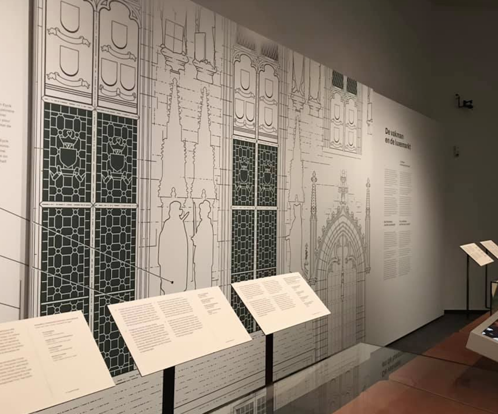 Leesbaarheid via verfrissende hedendaagse ingrepen, zoals grafische elementen, kijkwijzers, visuele afstandshouders, maar eventueel ook leuke kleine ingrepen (zoals de ‘miniatuur handjes’ van vorige Haute Lecture tentoonstelling). Zonering via kleurverschillen in de vloer maken het museumparcours leesbaarder.